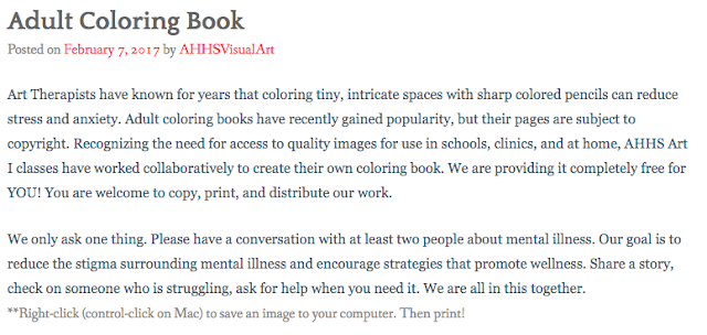 For those of you that want to put colored pencil to paper, check out our fabulous art teacher, Kirsten Guerrero and the amazing coloring pages her students created!